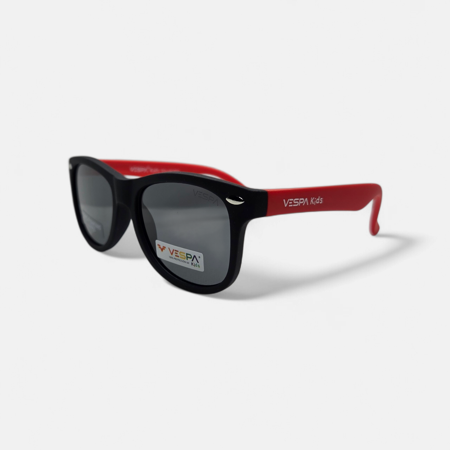 Haz que cada salida al sol sea segura y llena de estilo con los nuevos Vespa Kids. Diseñados específicamente para los rostros más pequeños, estos lentes combinan una estética moderna en color negro y rojo con la máxima tecnología de protección ocular. Cod: DYVE093 C2